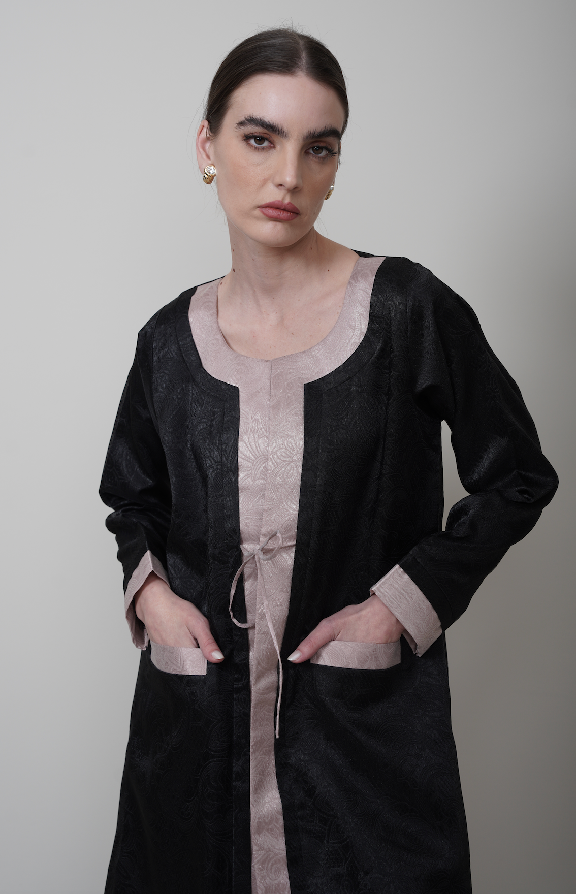 Patterned black fabric with dusty pink linings for your casual/chic settings.